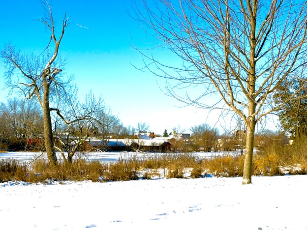 Driving steadily – as we did today – for more than an hour inevitably predicts a state of incremental evaporation or dissolution, a steady recline into the leather seat, a more frequent regard of the countryside, the distant horizon and the blue sky. In all the elevation of disbandment – reminiscent of looking out the window of a train as the world flashes by, inexorable, inalterable, unstoppable. Idle internal reflections ensue, coloured by the changing atmosphere from snow squall, foggy sky and azure solace. One is released of disquiet and accountability, satisfied that one will ultimately succeed to one’s goal. This is a bliss not shared by everyone but it unmistakably characterizes the willing and open conviction of the true automobile driver. No doubt, to the equestrian, an exemplar gelding is as memorable. For my part I am content with sensitivity to mechanical engineering including cruise control and Super Cruise (though I admit to a preference when driving to control the heated steering wheel and the imperceptible electronic acceleration).