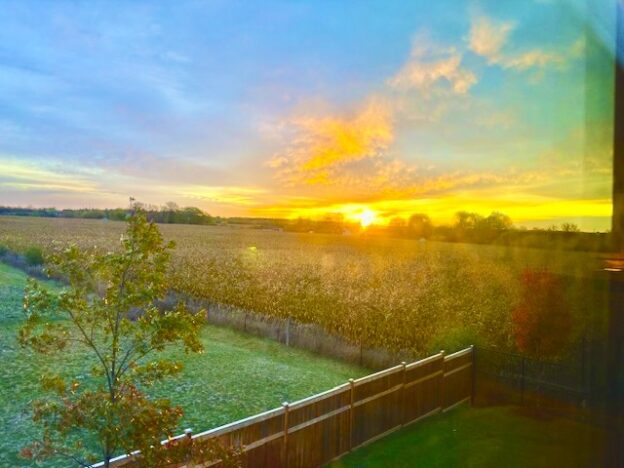 This is NOT a day to buy real estate!  The reason?  Because things today are unforgivably perfect. The negotiating table would be redundant.  The weather is incomparable – sunny, warm and crystal clear. Everywhere I looked, to the right, to the left, straight ahead, all was magnificent. The rolling fields of cornstalks waved in the wind. The burnished trees along the up and down corridors glistened in the slanted sunlight. The distant farm outbuildings and country homes were like oil paintings. There must be something in the air. The soft wind was clear and mellow. Yet it was seemingly loaded with replenishing ointment to assuage the bluntness of reality. And the sunlight! Nonpareil! At this time of year, autumn, the late afternoon glancing beams reflected the crimson blush evident throughout the countryside.