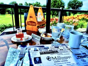 Shortly before ten o’clock this morning we pushed off to the golf club in the Village of Appleton for breakfast.  Last evening I had sent an email to Chef Wendy MacDonald specifying our intention to do so; and she had thoughtfully replied that all was in order. I prefer to ensure we are not colliding with a scheduled clubhouse event. When we arrived we were set on the outdoor patio at an umbrella table overlooking the fairway.