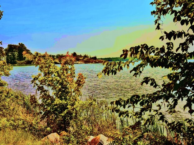 The international division has in the past normally been acquainted with our journey to or from the USA. Most recently it signalled our return to Canada in early April from Hilton Head Island, SC. Today the passage along the Ivy Lea Parkway parallel the River marked a brief outing associated with our investigation of Recess Café in Portland, Ontario along Hwy#15 beyond Smiths Falls. We didn’t stop at the Café today but we intend to return. It has already formed part of our catalogue of immediate excursions, those that we save for lovely summer days or similarly propitious moments.