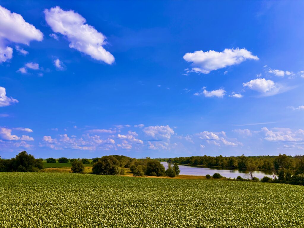 In conclusion these mundane moorings to society fulfill the need for moderate daily growth and involvement. The energy borders the placid view of the corn fields and the glistening river. I have today expiated my inadequacy. As the late afternoon approaches, the slanting sunlight magnifies the broad, green leaves populating the breadth of the fields to the distant horizon. Once again I am challenged to imagine a more entrancing spectacle.
