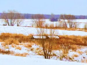 A wet flurry of snow began. A gentleman breezed out of his car wearing a red tasseled hat with white faux fur trim, looking terribly determined and confident in his ornamental garb. Across the street from the grocery store parking lot two men fussed and banged hammers onto a new building roof. Christmas has not yet entirely overtaken the commercial world; that is, not to the point of deprivation.