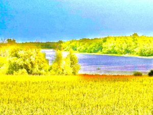 I don’t need to tell you – l am certain – the nonsense surrounding the first damage infraction to one’s new car. The late Hughie Whitten (who worked for the former Burns GM dealership in town owned by Kathy Norton’s father) routinely and mockingly observed, “The first thing you do with a new car is drive it through a barbed wire fence then beat it with a baseball bat!” And while I seek philosophically to embrace the possibility of doing so, frankly I dislike both the eventuality and the actuality – whether intended, accidental or vicarious. Nonetheless for the moment at least it appears luck is on my side and the delightful appearance of the vehicle has been completely sustained. It took a restful hour on the balcony overlooking the river in the balmy, breezy summer mid-afternoon air to accede to my former unfettered indolence. As you can see so vividly from these faint recollections I hardly have a second throughout the day to remove myself from these exigencies in order to devote myself to my personal ambitions. Yet here at last I have landed, fully restored.