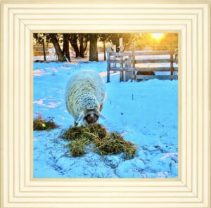 Upon regaining our tiny nest along the river, sheltered from the agitation of the snow, safely regarding my upriver view (and with my coat and silken scarf still on) – and having surmounted the threatened obstruction of the automatic garage door because of the freezing temperatures, I plopped into a comfortable chair in the drawing room and read my email. My goddaughter/niece had sent photos from the farm where she and her co-vivante live in Maxville east of Ottawa. Br-r-r! was the message. My niece is a professional photographer so we always have capital to share – though she has the dignity not to adjudicate my amateur hobbyist productions.