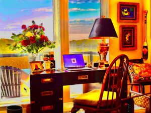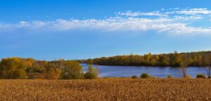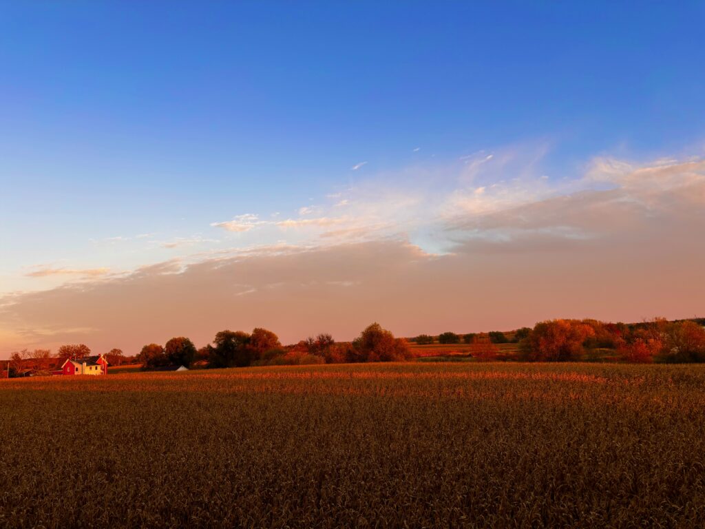 This is NOT a day to buy real estate! The reason? Because things today are unforgivably perfect. The negotiating table would be redundant. The weather is incomparable – sunny, warm and crystal clear. Everywhere I looked, to the right, to the left, straight ahead, all was magnificent. The rolling fields of cornstalks waved in the wind. The burnished trees along the up and down corridors glistened in the slanted sunlight. The distant farm outbuildings and country homes were like oil paintings. There must be something in the air. The soft wind was clear and mellow. Yet it was seemingly loaded with replenishing ointment to assuage the bluntness of reality. And the sunlight! Nonpareil! At this time of year, autumn, the late afternoon glancing beams reflected the crimson blush evident throughout the countryside.