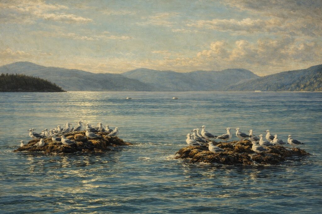 Upon my return home – and after having dutifully vacuumed the rugs of the car and replenished the windshield wiper fluid – I was subsequently diverted from monotony upon receipt of a photo of Saanich Inlet, British Columbia from our dear friend Marilyn who inhabits this select area of the world.