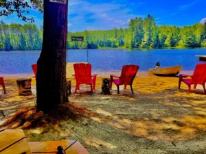 Although a “Severe Thunderstorm Watch” now prevails at the end of the day, the weather this morning and earlier this afternoon was the ideal mid-summer heat with soft, balmy gusts and brilliantly sunny skies. The temperature rose to a commanding 35°C. By chance my lovely niece Julia and her husband Matt were visiting from California (on the heel of comedic performances in Montréal). They and my sister Linda and her husband Edward are staying at a cottage near the Village of Combermere along the Madawaska River. It is part of the Township of Madawaska Valley. It is named after Sir Stapleton Cotton, Viscount Combermere (1773–1865) though for the immediate reasons why I regret to be unable to discern. He has a vivid biography.