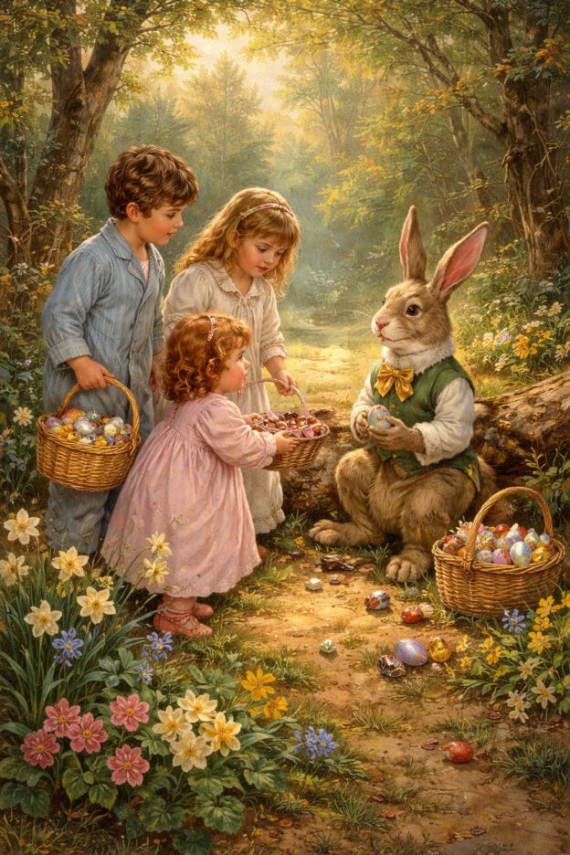 The Bunny gave a tired smile. “Not late. Just…overworked this year. So many children. So many eggs. And I seem to have misplaced my last basket.”