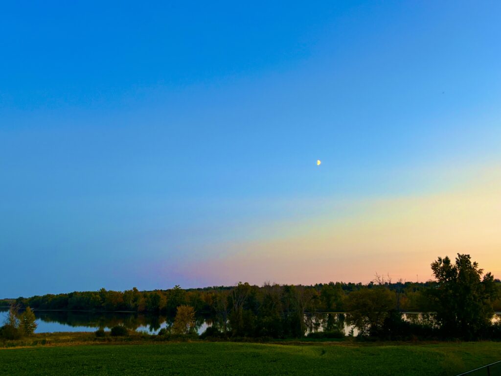 Now follows the indulgences and final rewards of the day, the cocktail hour of recapitulation and reconsideration as we immerse ourselves at table in nattering and reformation of the events of the day. The sunny rich yellow shaft of light upon the mirror of the river shines from its perimeter of burnished leaves in the thick forest line. Autumn with its subdued air of folding and divestment is about its business. We shall soon scurry like rabbits from the inevitable peril of scudding snow and freezing rain. But for now it’s butterflies and Ladybugs that quell the awakening uproar, that soften the gusts of fallen leaves and soothe the smacks of the bitter wind that follows.